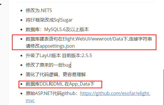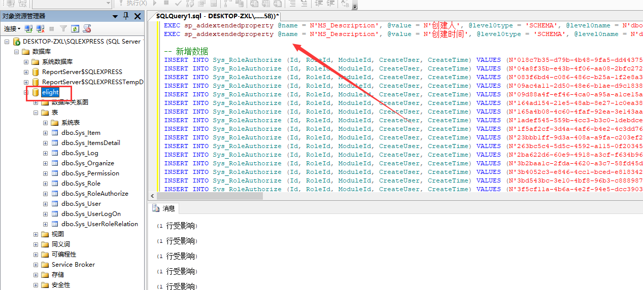 由于我本机是sqlserver, 所以我改了下 appsetting.json 里要使用的数据库,然后在sqlserver 创建了一个库 elight,并 执行sql脚本
