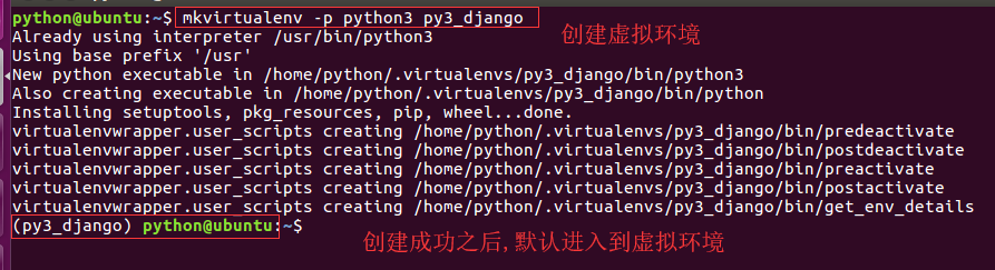 - 提示:如果不指定python版本,默认安装的是python2的虚拟环境