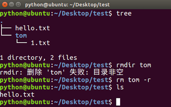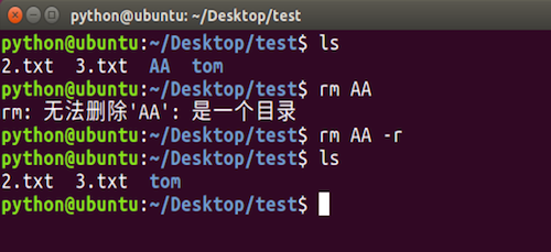rm 命令想要删除目录需要加上-r选项,-r表示递归删除目录及其内容
