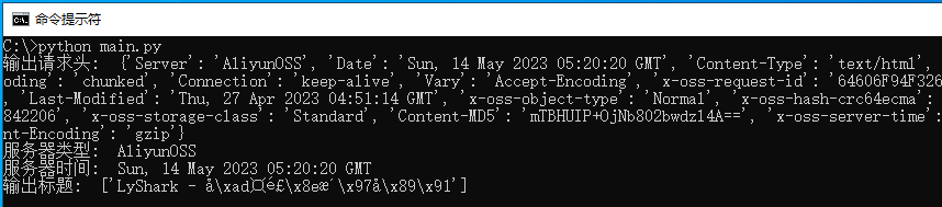 ".format(down_page))我们以下载www.lyshark.com主页为例,当执行后读者可看到如下图所示的输出结果;