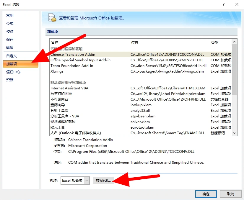 到此环境最终配置完毕。以上配置路径在不同版本的 Excel 中是不一样的,这里不打算展开。