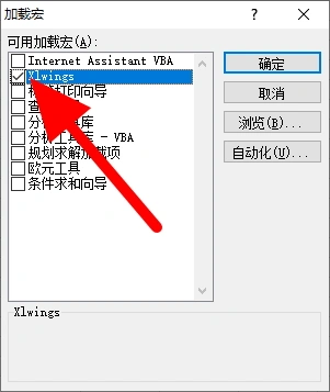 ,在里边找到并选中上面安装 xlwings 时自动创建的文件 xlwings.xlam