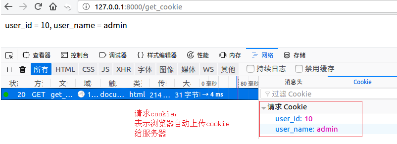 - 浏 览器请求服务器(网站)时,会自动上传该服务器(网站)生成的所有Cookie